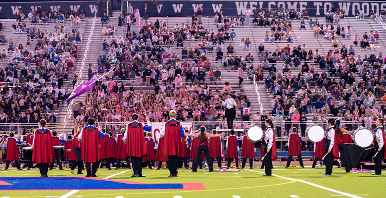 Woodson offers two marching band options, both open to any student enrolled in a band course: